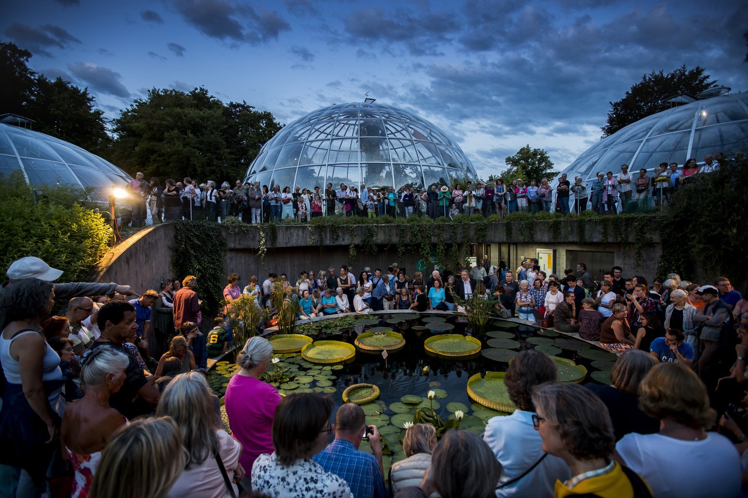 Diese Leute warten darauf, dass dice Riesenseerose erblüht. Bild: KEYSTONE